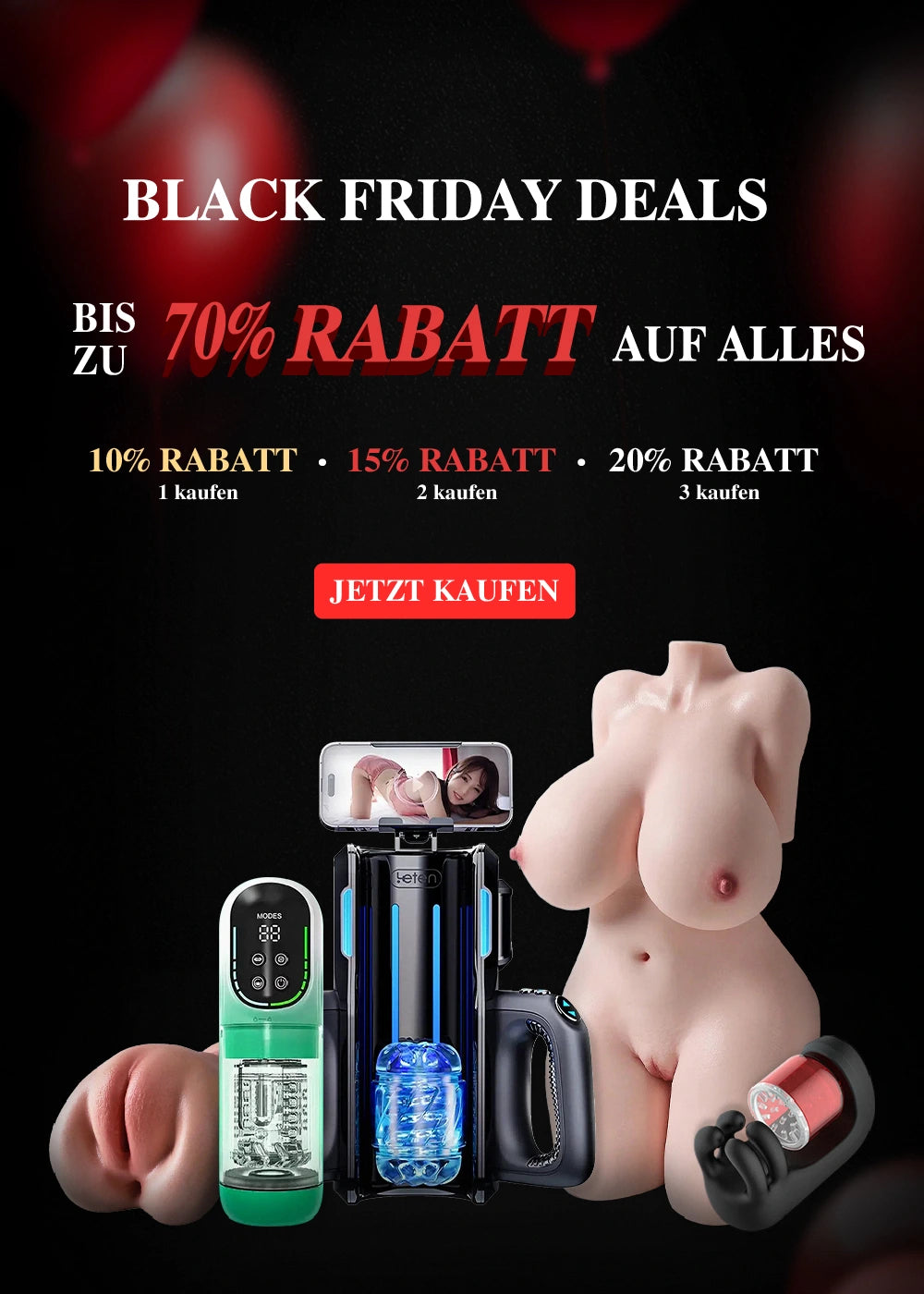 - Mittelklasse (€50–€100): Zusätzliche Vibration, Saug- oder Stoßfunktion, z. B. Masturbator Automatisch, mit mehreren Intensitätsstufen und leisem Motor.